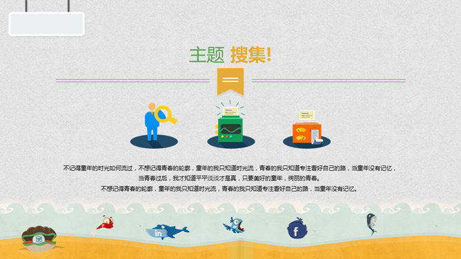 精美创意剪贴画风格PPT模板。一套精美幻灯片模板,扁平化设计风格,创意剪贴画效果设计,多彩配色,动态播放。
