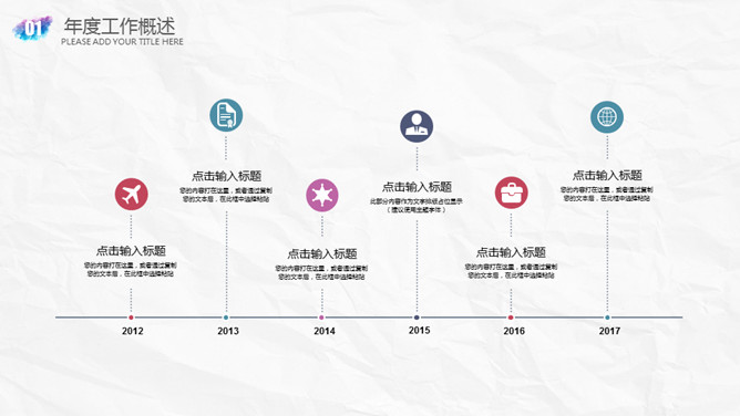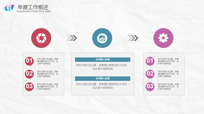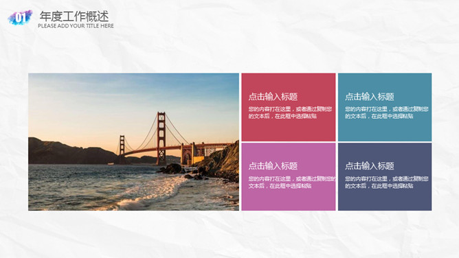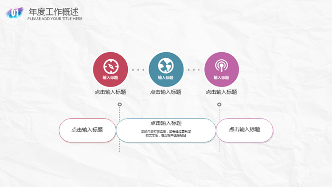创意墨迹水彩晕染PPT模板。一套精美的幻灯片模板,浅灰纸质纹理背景,创意墨迹效果装饰,多彩配色,通用性强。