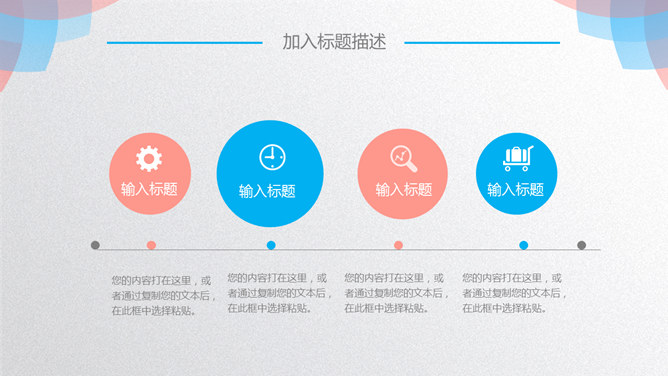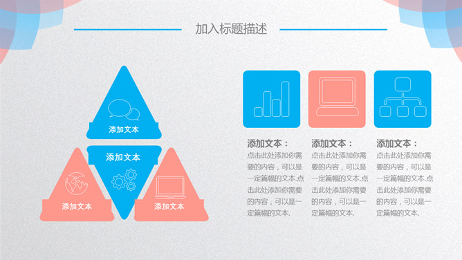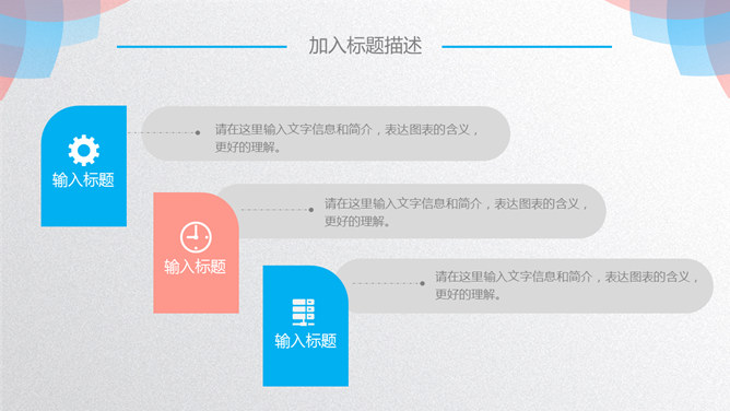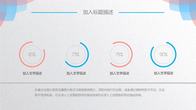 精致蓝橙花瓣通用PPT模板。一套艺术设计通用幻灯片模板,质感渐变灰色背景,清新蓝橙配色,花瓣效果装饰。
