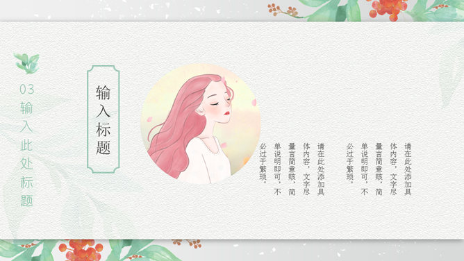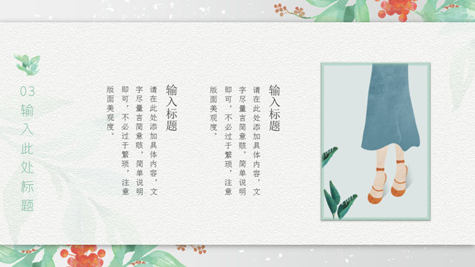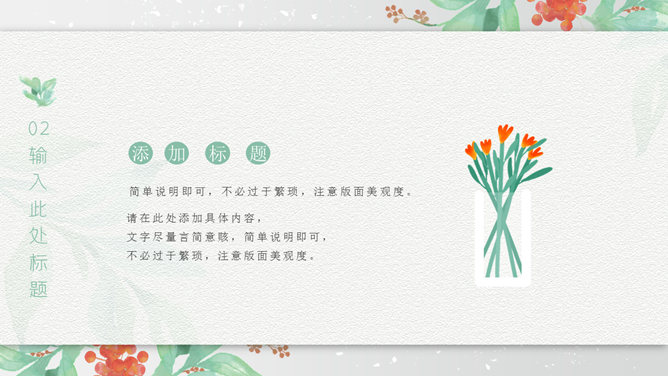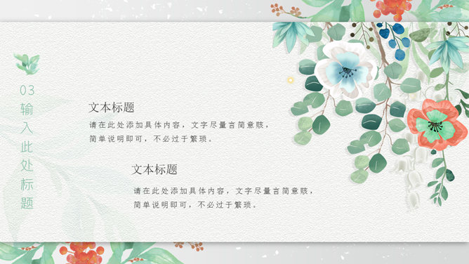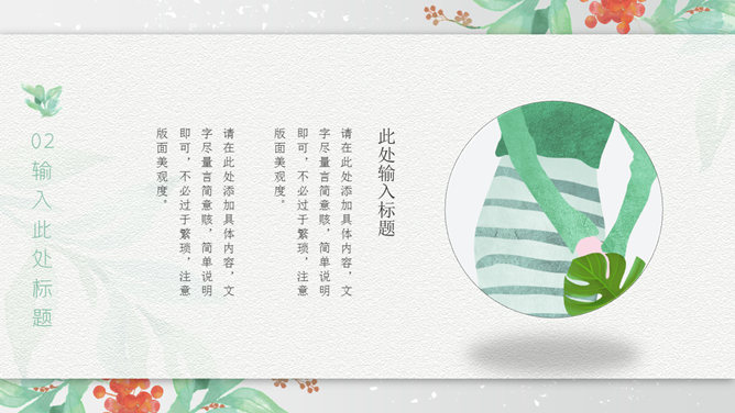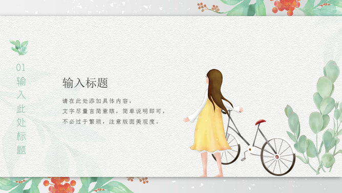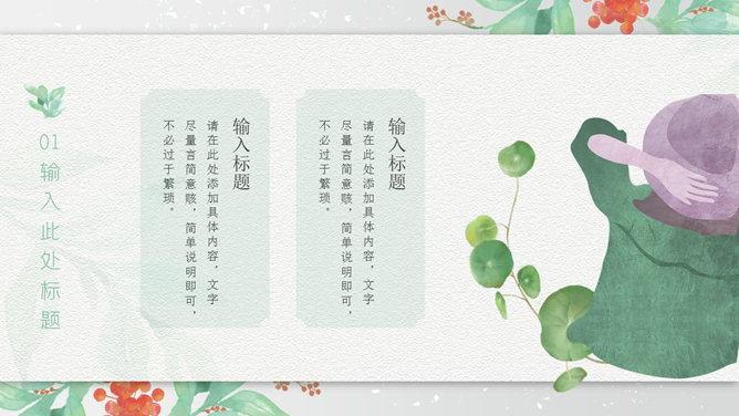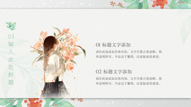 文艺水彩唯美小清新PPT模板。一套淡雅小清新幻灯片模板,唯美水彩植物人物装饰,动态播放效果,非常有文艺范。