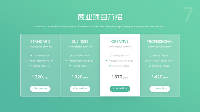 清新绿色商业计划书PPT模板。一套商业创业计划书幻灯片模板,清新绿色配色,简约大气设计,适合商务相关主题。