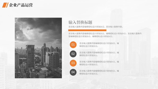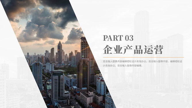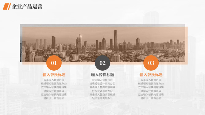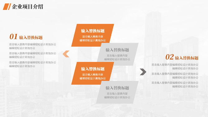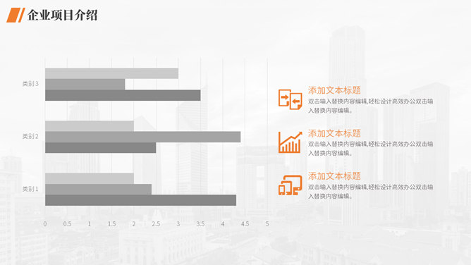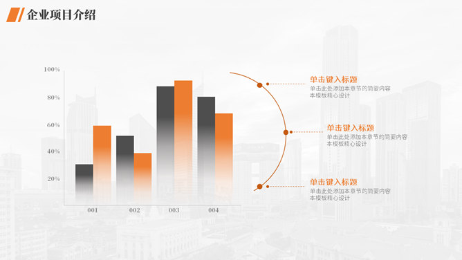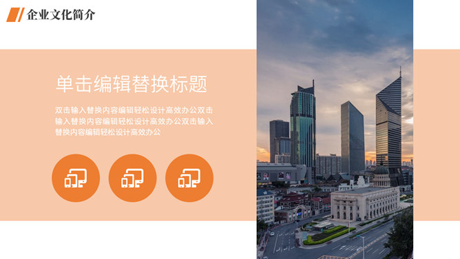 大气企业宣传介绍PPT模板。一套公司企业简介宣传幻灯片模板,大气稳重设计风格,橙色主色调,适合公司介绍主题。