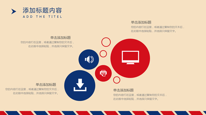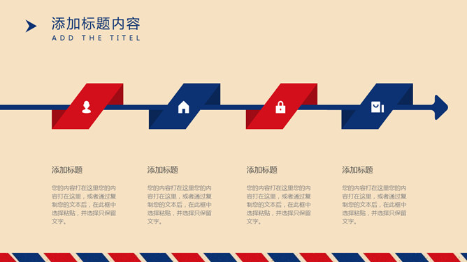 复古红蓝英伦风PPT模板。一套创意设计幻灯片模板,时尚英伦风红蓝配色,复古背景色调,适合工作总结汇报等用途。