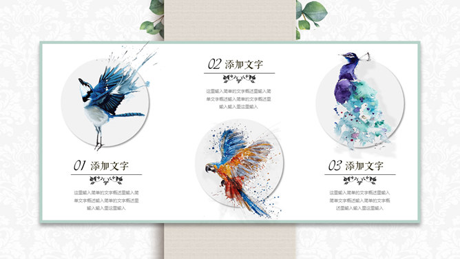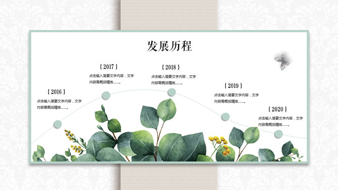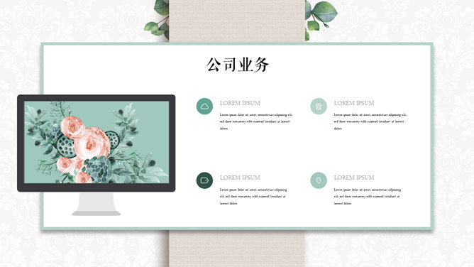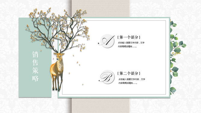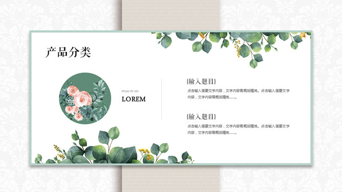 清新唯美绿叶叶子PPT模板。一套唯美通用幻灯片模板,清新绿色叶子装饰,悬浮卡片设计效果,通用性强,动态播放。