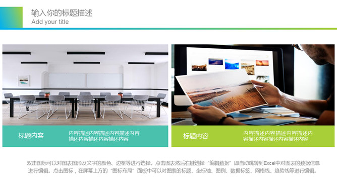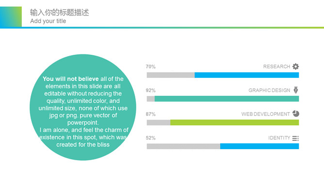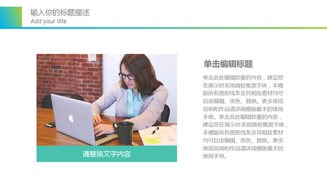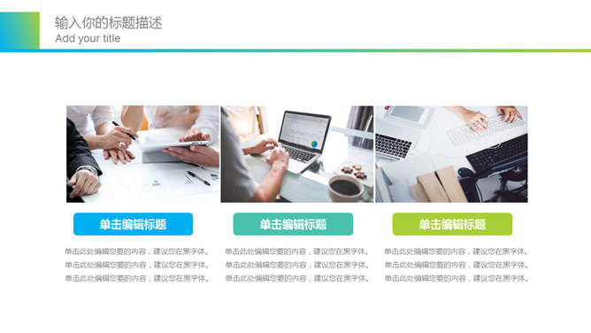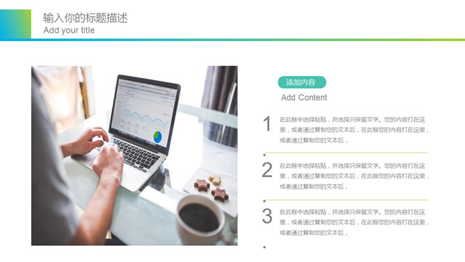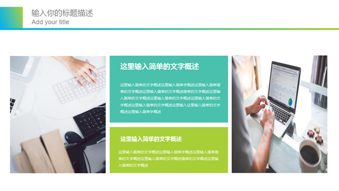 清新蓝绿渐变通用PPT模板。一套简约通用设计幻灯片模板,清新蓝绿渐变配色,通用性强,适合商务演示、工作汇报等。