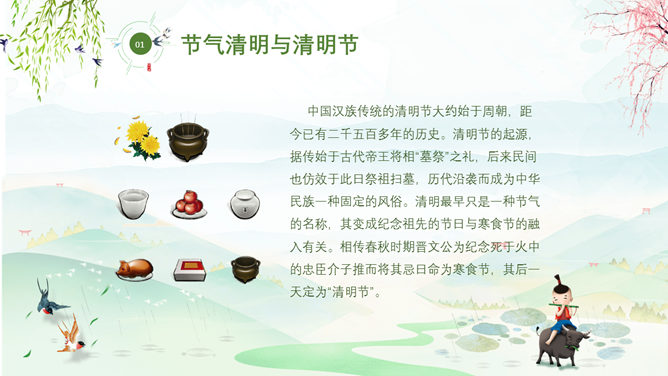 牧童清明节习俗介绍PPT模板