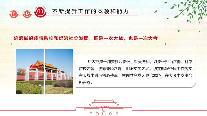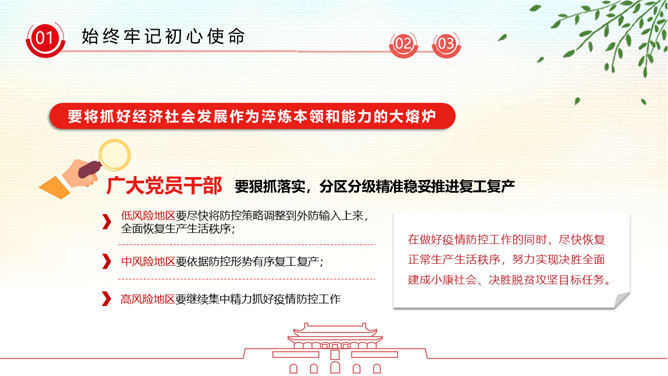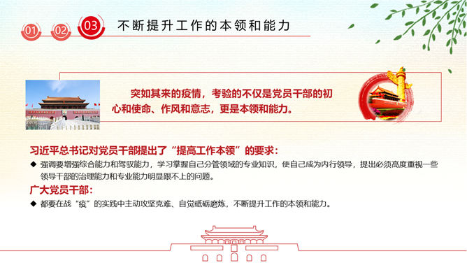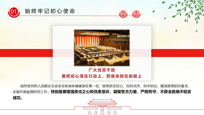 疫情党课政治教育PPT模板。广大党员干部要增强必胜之心,勇当先锋、敢打头阵,用行动展现共产党人政治本色,坚决打赢这场疫情防控的人民战争、总体战、阻击战。
