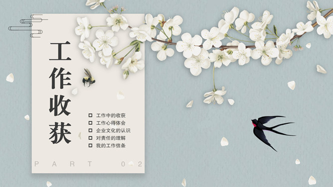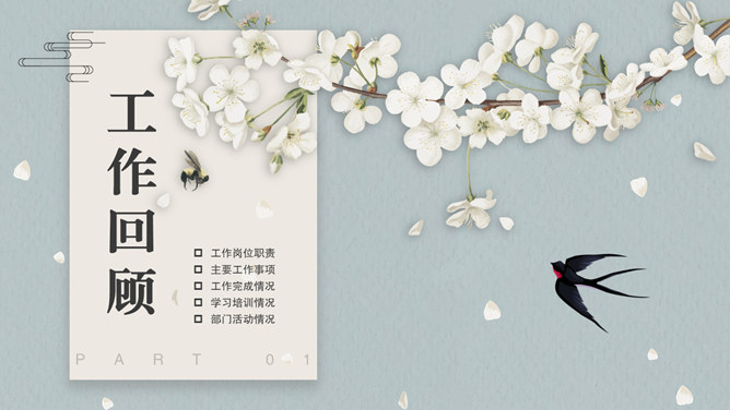 淡雅唯美春天燕子PPT模板。一套春天主题幻灯片模板,素雅配色,花朵燕子等春天元素,装饰,淡雅唯美,通用性强。