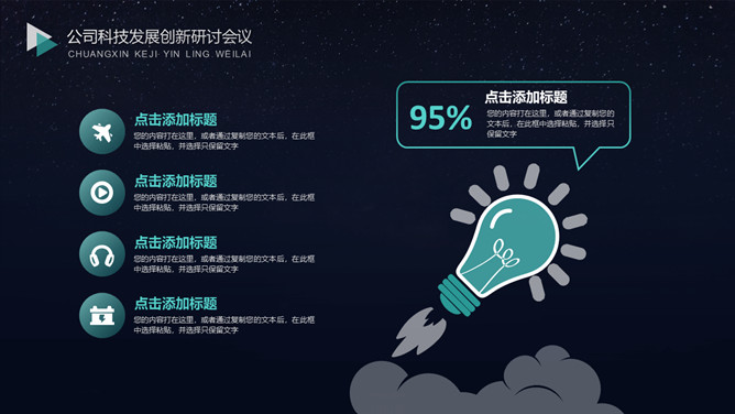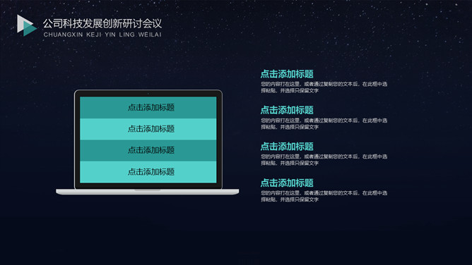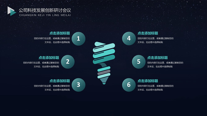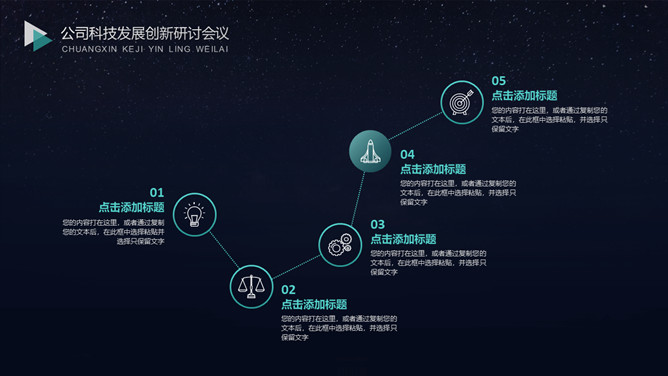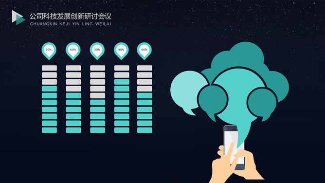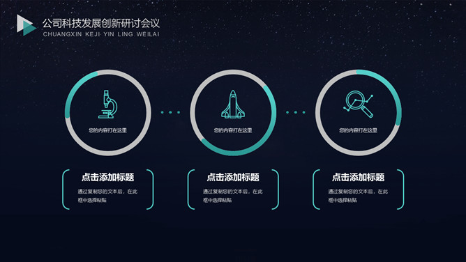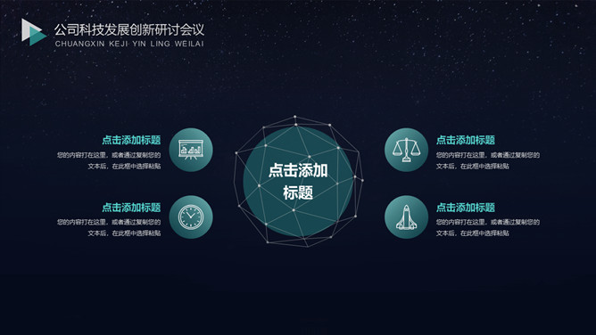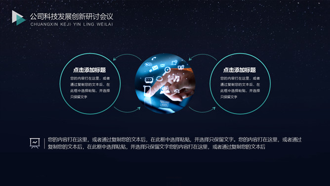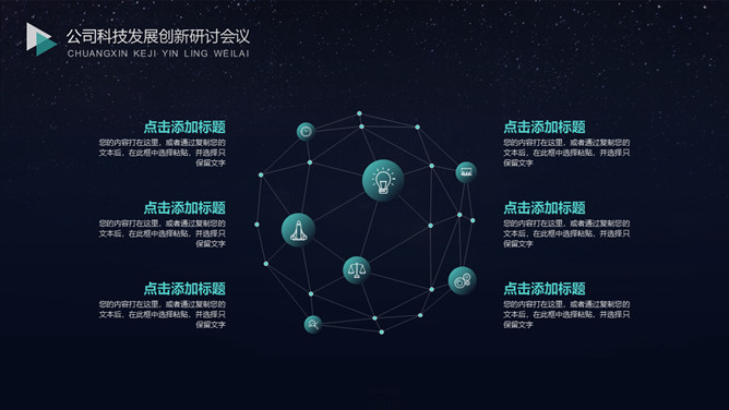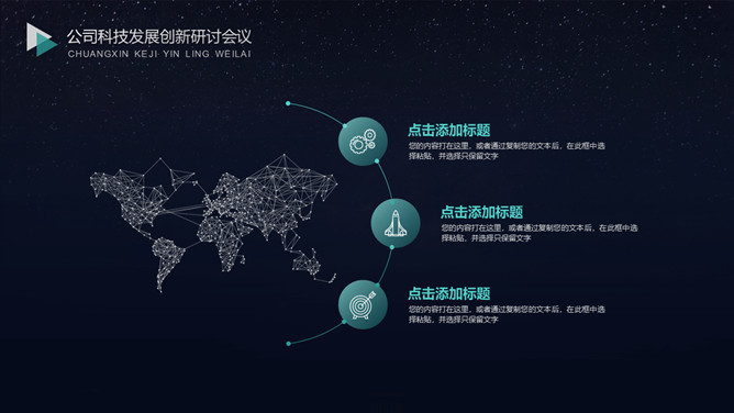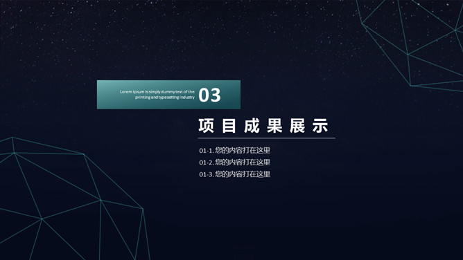 简约深色网络科技风PPT模板。一套科技风幻灯片模板,深蓝背景,极简设计,渐变图形元素,适合网络大数据互联网相关主题内容。