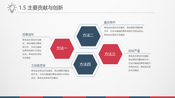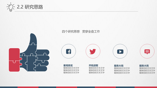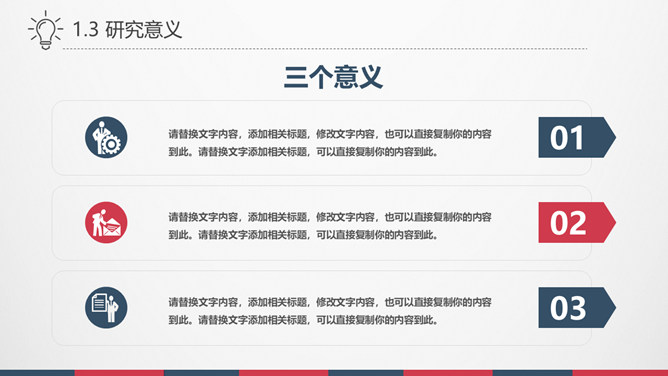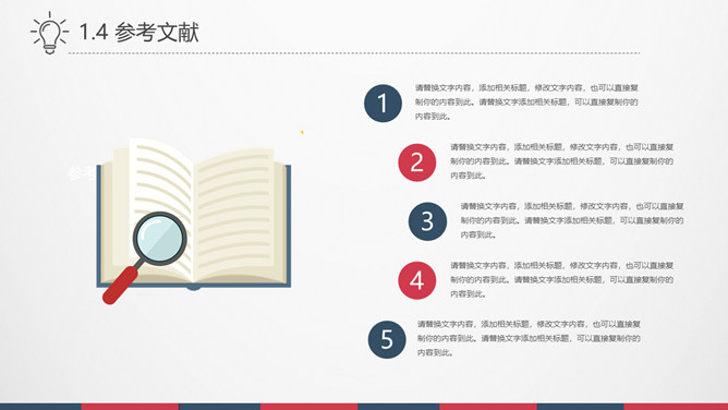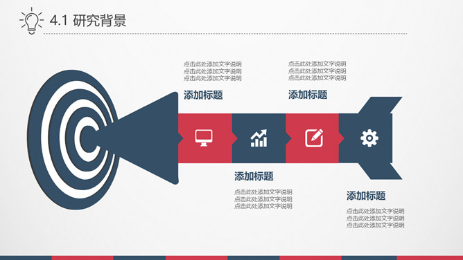 极简红蓝复古论文答辩PPT模板。一套极简设计毕业设计论文答辩幻灯片模板,渐变灰色背景,时尚复古红蓝配色,适合开题报告等用途。