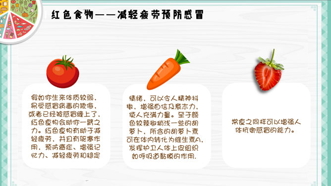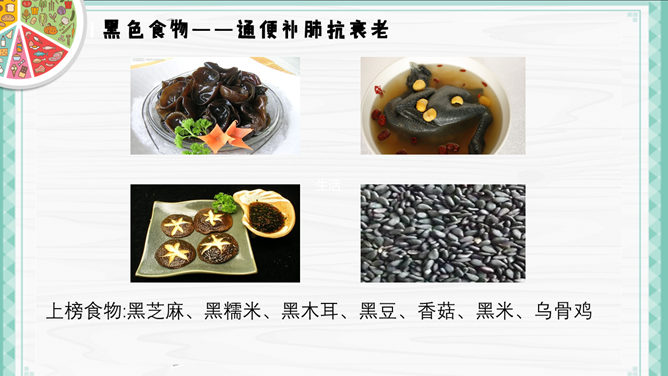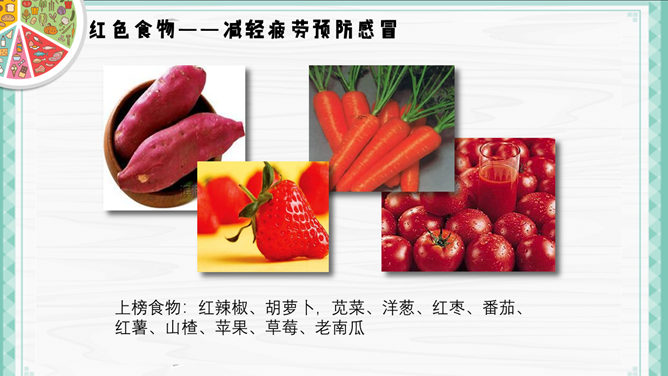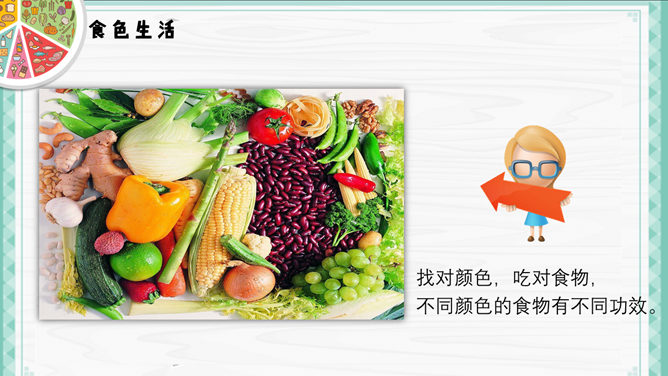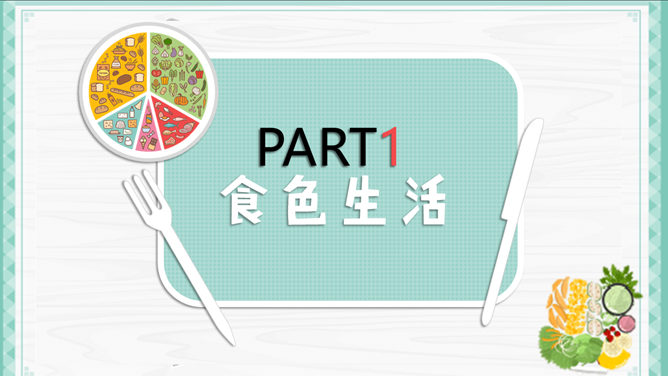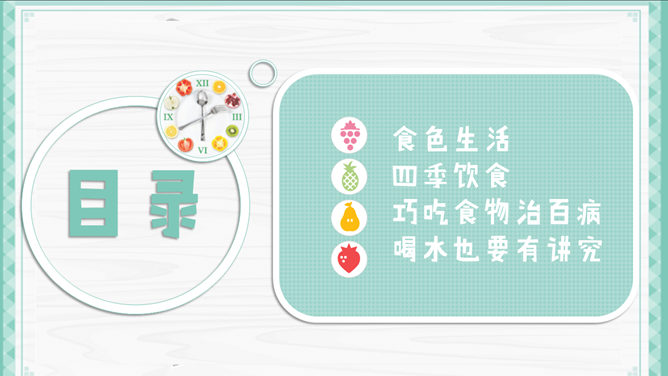 健康生活饮食常识PPT模板。一套介绍健康生活、健康饮食小常识的幻灯片模板,精美实用,包括食色生活、四季饮食、巧吃食物治百病、喝水也要有讲究几个部分,使用字体: