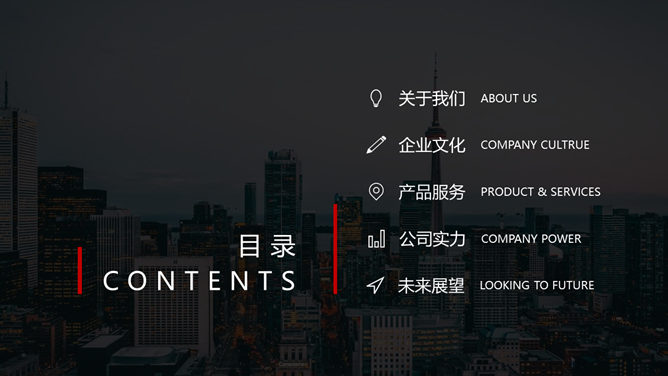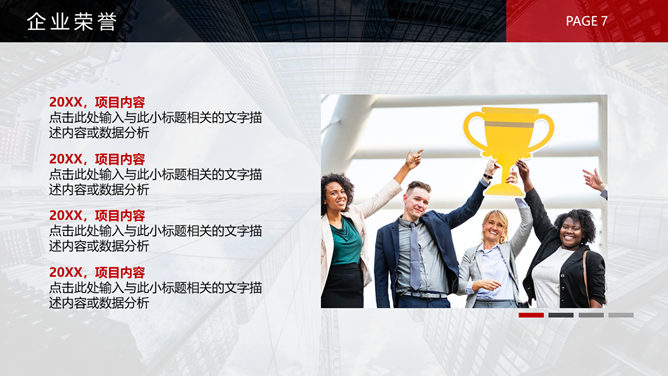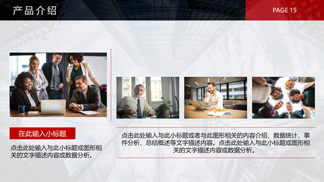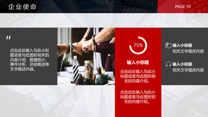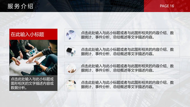 黑红公司企业介绍PPT模板。一套公司企业介绍简介幻灯片模板,灰色背景,大气经典黑红配色,页面类型丰富实用,动态播放效果。