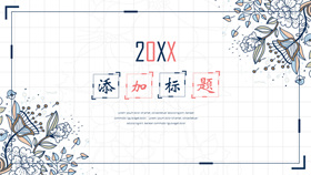 清新粉蓝唯美花朵PPT模板