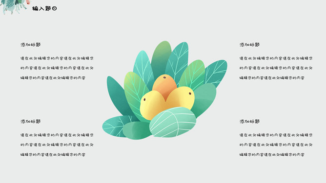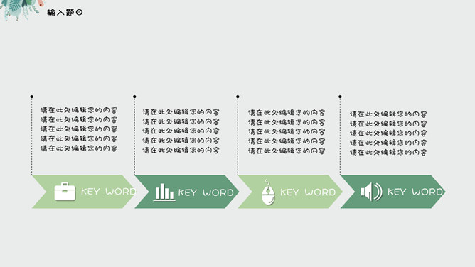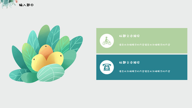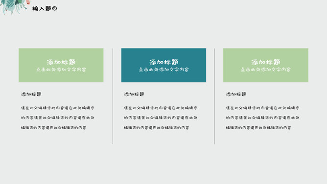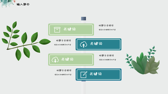 夏日唯美淡雅小清新PPT模板。一套夏日小清新幻灯片模板,绿色植物素材装饰,淡雅唯美,使用字体: