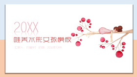 唯美清新树枝女孩PPT模板