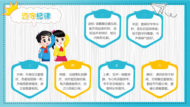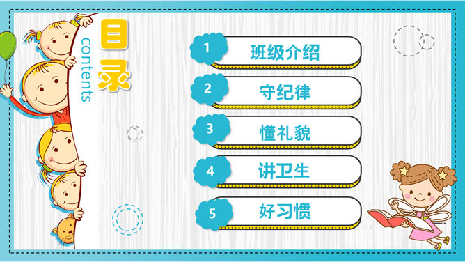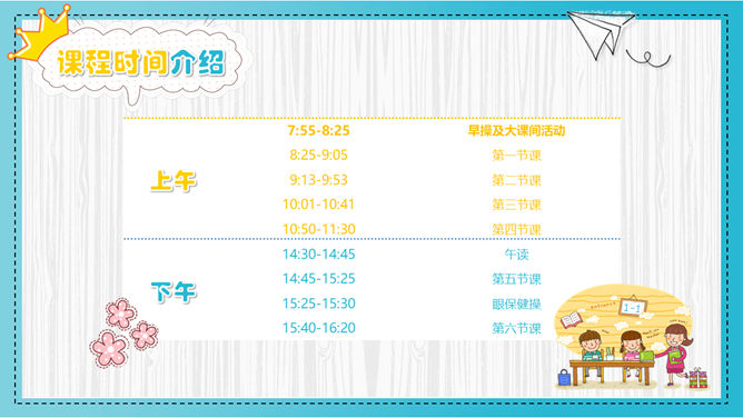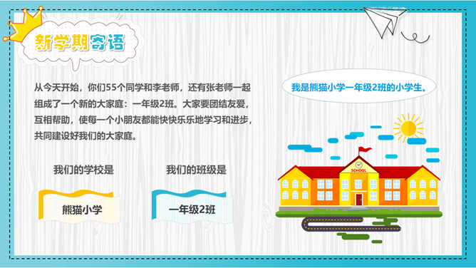 卡通开学第一课返校PPT模板。一套新学期开学返校第一课幻灯片模板,设计精美,卡通风格,使用字体: