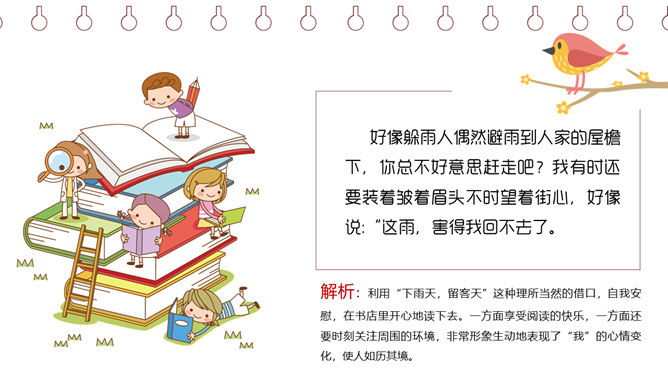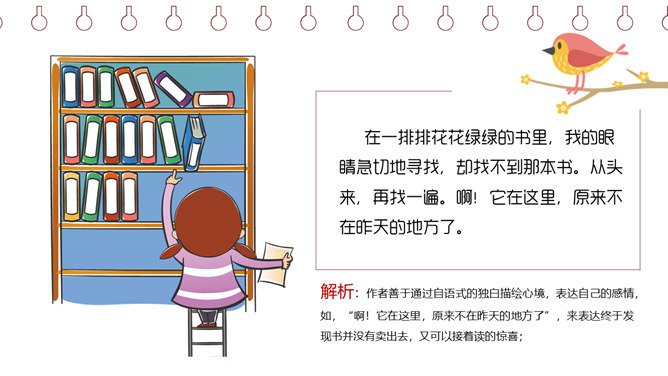 林海音,原名林含英,小名英子,原籍台湾苗栗县。代表作品:散文集《两地》《芸窗夜读》;短篇小说集《城南旧事》《烛心》;长篇小说《春风》《晓云》;广播剧集《薇薇的周记》等。“窃读”是什么意思?为何要“偷偷地”读书? 作者善于通过自语式的独白描绘心境,表达自己的感情,如,“啊!它在这里,原来不在昨天的地方了”,来表达终于发现书并没有卖出去,又可以接着读的惊喜。所属专题:窃读记ppt。