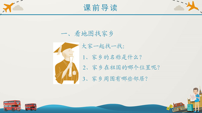 我的家乡在哪里PPT课件。大家一起找一找:1、家乡的名称是什么?2、家乡在祖国的哪个位置呢?2、家乡在祖国的哪个位置呢?看地图找家乡,测测从长沙到北京有多远?我们在地图上画画家乡吧!想像一下它像什么?如果涂颜色,你会选择什么颜色呢?