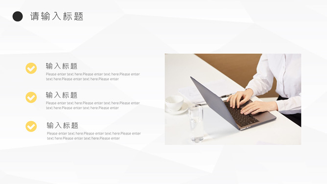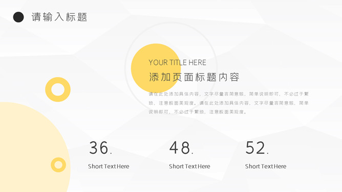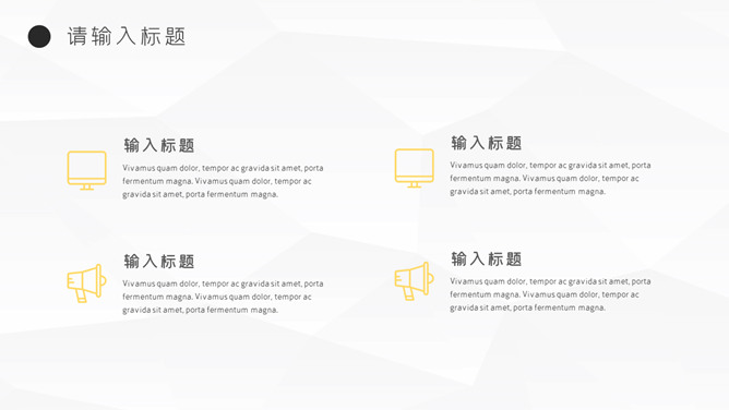 极简工作述职报告PPT模板。一套工作岗位竞聘述职报告幻灯片模板,经典黑黄配色,低面多边形背景,极简通用设计。