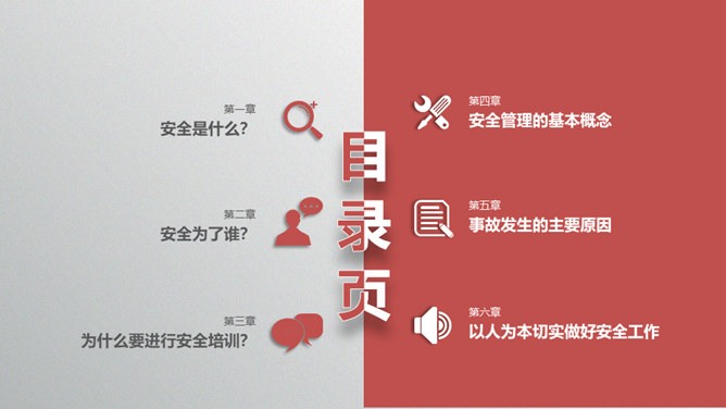 安全生产培训教育PPT课件模板。一套安全生产教育培训课件幻灯片模板,安全是什么?安全为了谁?为什么要进行安全培训?安全管理的基本概念。事故发生的主要原因。以人为本切实做好安全工作几个部分。