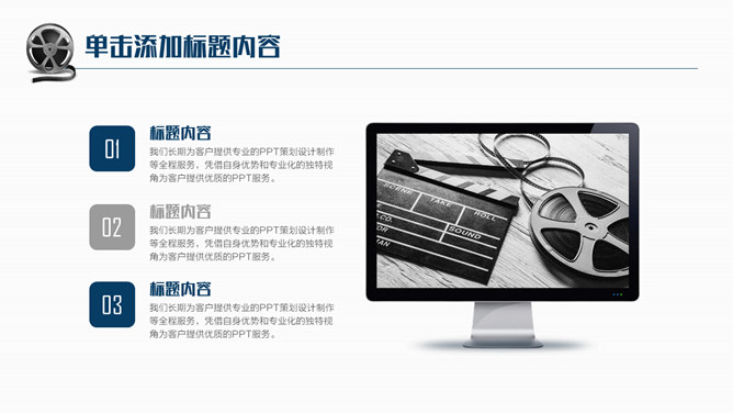电影影视影片主题PPT模板。一套电影影视主题幻灯片模板,适合影视影片欣赏及影视理论教学等用途。