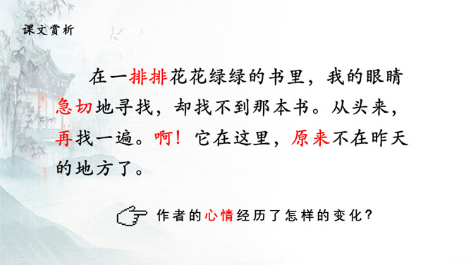 “窃读记”中的“记”是什么意思?本文以“记叙”为主,属于叙事散文。文章中有很多精彩语句,请圈画出来,并说说看你喜欢它们的理由。名言名句知多少:书籍是人类进步的阶梯。(高尔基)书是全世界的营养品。(莎士比亚)生活中没有书籍,就好像没有阳光,智慧里没有书籍,就好像鸟儿没有翅膀。(莎士比亚)书籍,是了望世界的窗口,改造灵魂的工具,打开知识宝库的钥匙。读书,能使人愉快,使人聪明。所属专题:窃读记ppt。