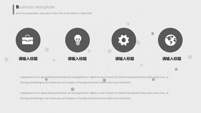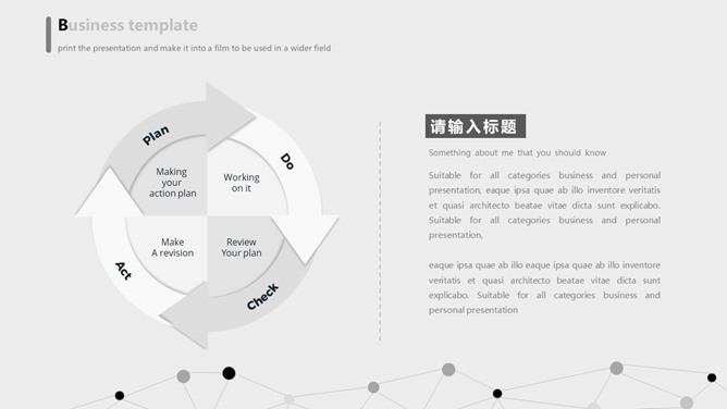 极简灰色点线科技风PPT模板。一套简约通用幻灯片模板,大气素雅黑灰配色,点线粒子科技风设计。