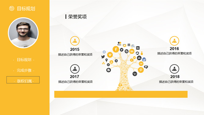 侧边导航个人简历PPT模板。一套创意设计个人岗位求职简历幻灯片模板,创意实用侧边栏导航。