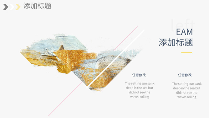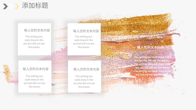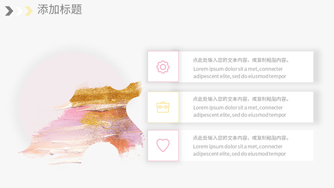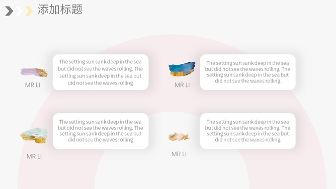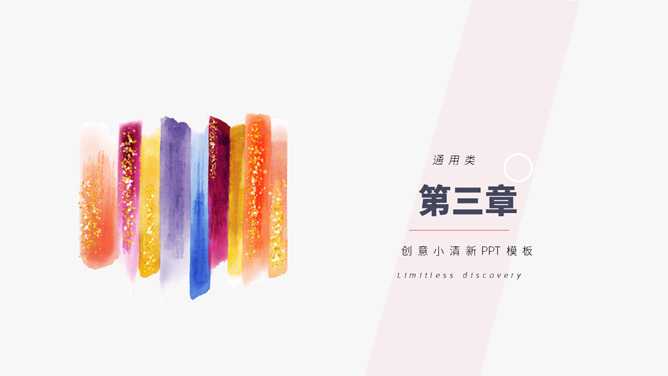 小清新简约彩色墨迹PPT模板。一套小清新幻灯片模板,粉色暖色主色调,简约设计,墨迹素材主元素,通用性强。