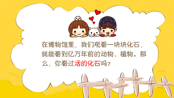 课前准备:边读边画出自己不认识的字,稍后共同学习;边读边画出自己不懂的词语或句子。 “活化石”又是什么呢?在博物馆里,我们观看一块块化石,就能看到亿万年前的动物、植物。那么,你看过活的化石吗?( 银杏树 )、(大熊猫 )、(中华鲟)三种古生物都是(活化石)。课后作业:同学们,化石陈列在博物馆有讲解员讲解,“活化石”生活在大自然里。如果有人来参观,你愿意为他们提供讲解服务吗?你觉得可以从哪些方面来进行讲解?要注意什么?