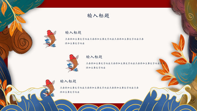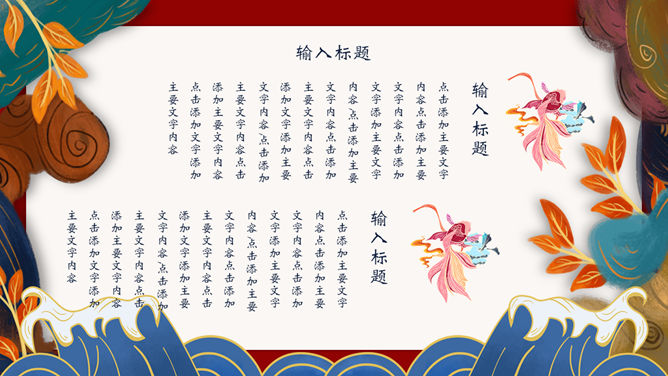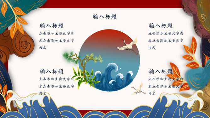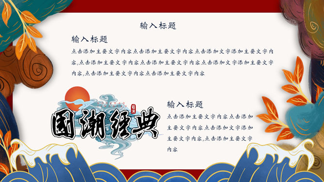 新中式国潮中国风PPT模板。一套精美中国风幻灯片模板,新中式设计,潮流国潮范,动态播放效果。