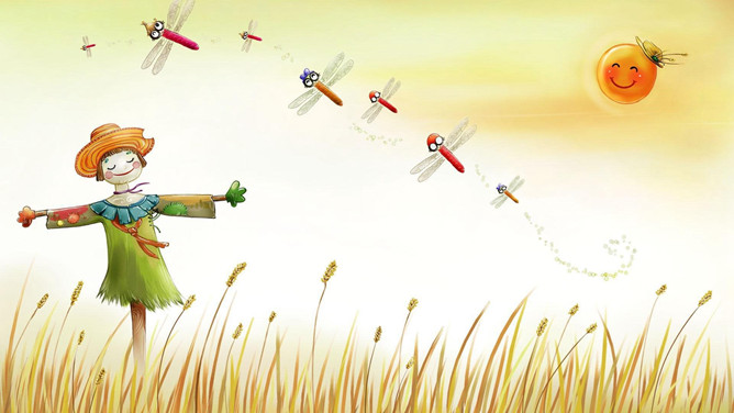 秋天可爱稻草人PPT背景图片。一套秋天麦田里的稻草人背景图片合集,共3张,大图JPG格式,非常可爱。
