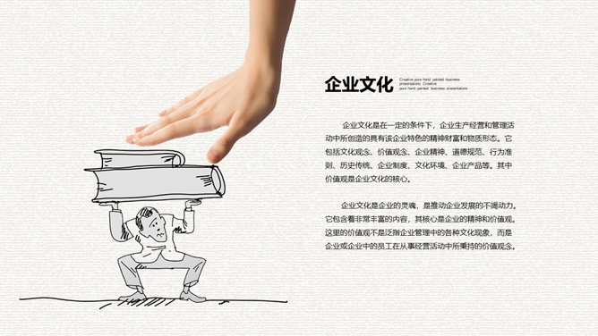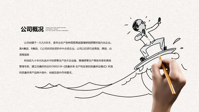 创意手绘手势公司介绍PPT模板。一套公司简介介绍幻灯片模板,创意手势设计,手绘风格,简约大气。