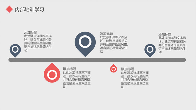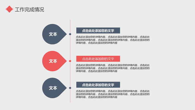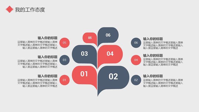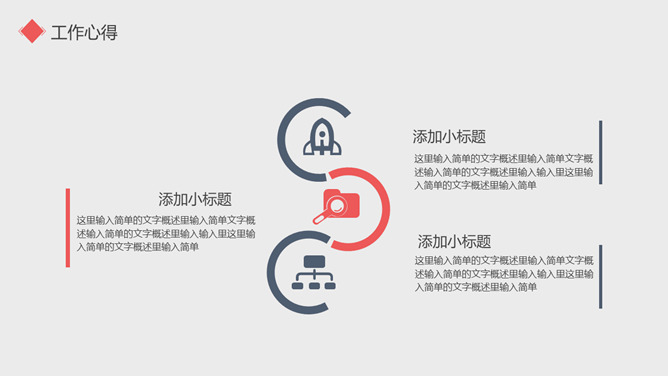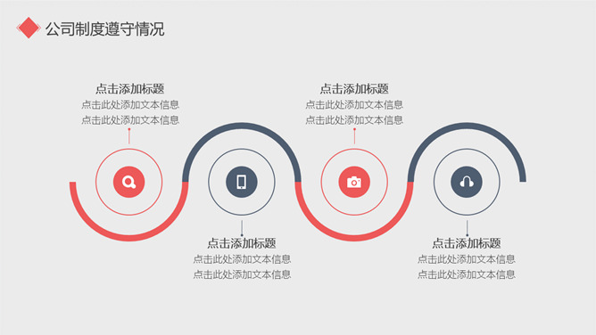 极简试用期转正述职报告PPT模板。一套试用期员工转正工作述职报告模板,灰色背景,极简设计,红蓝配色。