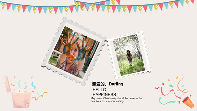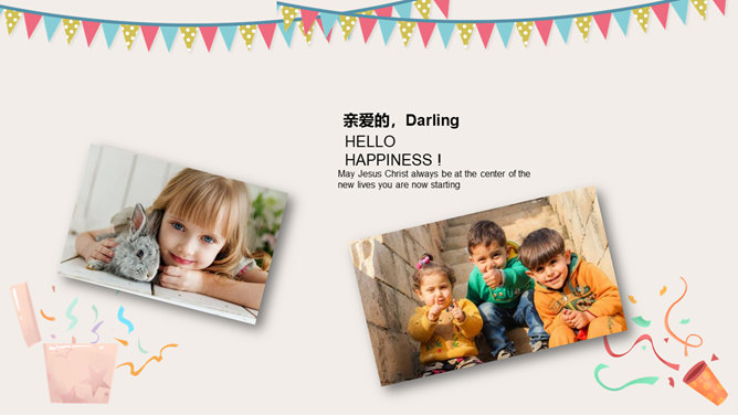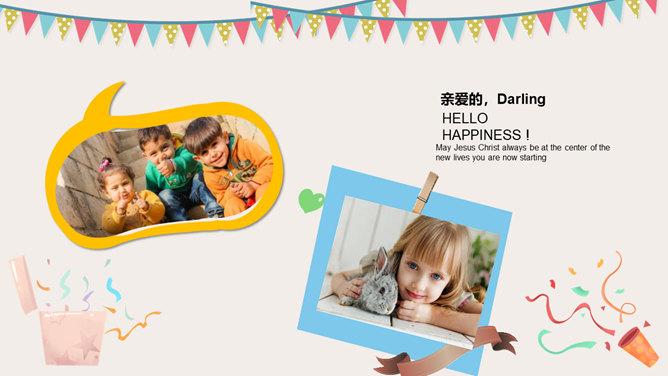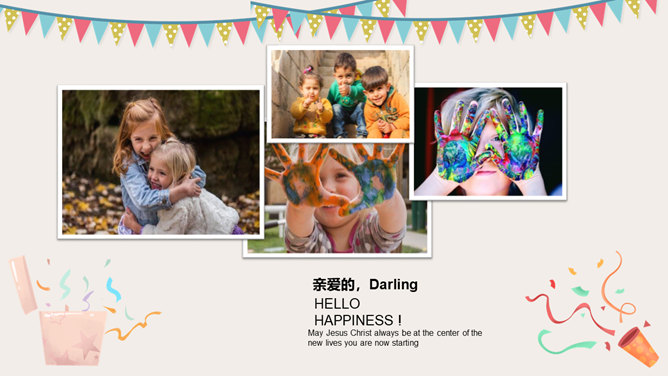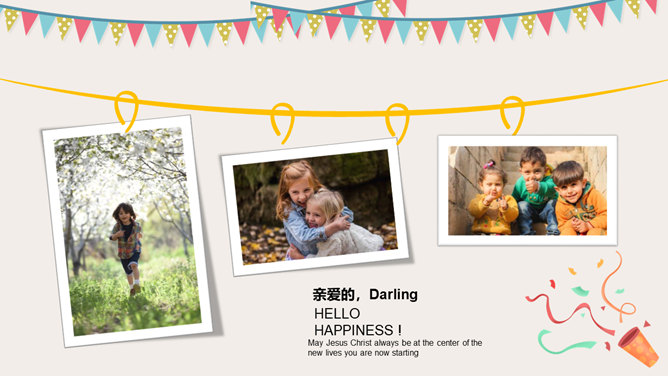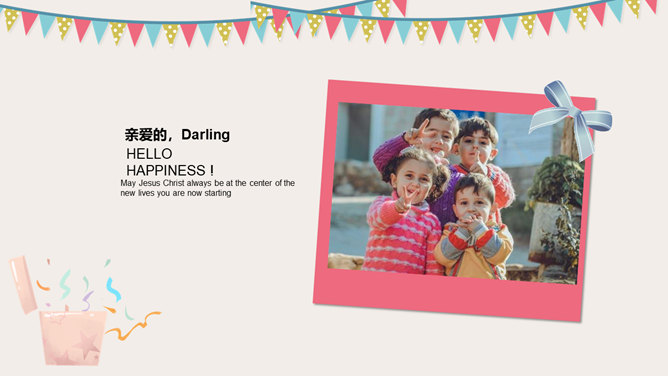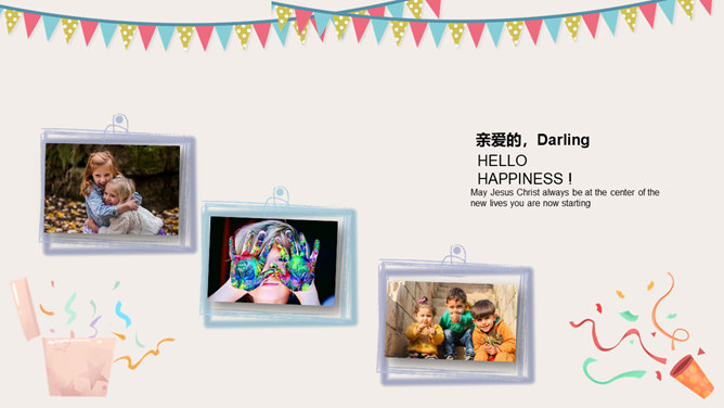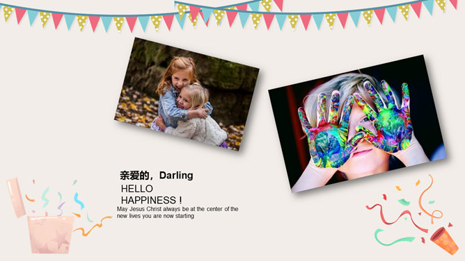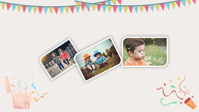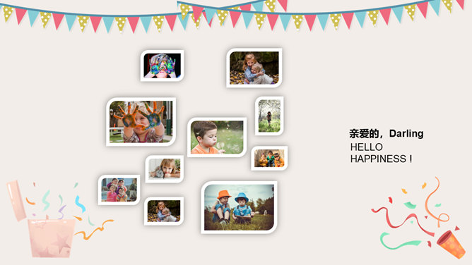 庆祝生日周岁相册PPT模板。一套庆祝生日的动态照片相册幻灯片模板,多种图片排版方式,直接替换图片即可。