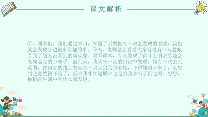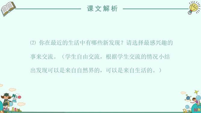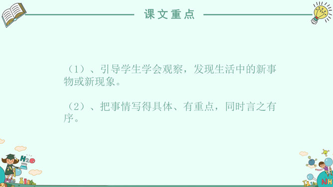 ⑴.学生交流自己的习作,就是否语句通顺、记事是否有顺序、有重点,发现问题,解决问题的过程是否写具体等方面进行交流点评。⑵.学生阅读自己的习作,对习作中有明显错误的词句及标点进行修改。⑶.誊写习作。①.选择学生习作一份,读一读。看看他写清楚、写具体了发现、探究的经过了吗?②.他还有什么地方可以写得更好一些的?③. 教师再选择一份不仅写清楚了发现过程,同时还描写了自己在发现过程中的心情的习作或精彩的片段。⑷.根据精彩的片段,再来修改自己的习作。(设计意图:学生个体之间的生活积淀、文化底蕴、审美情趣是千差万别的,每一个学生相对于他的同伴就是一个很好的学习资源。通过阅读同伴的习作,进一步明白同伴是如何把要把发现的过程写清楚、写具体的。)⑴.同学们,今天我们交流了自己在平常生活中的发现,知道了习作内容源于生活,我们要平时要乐于体验生活、善于观察生活;二是知道了记事要有顺序、有重点、写具体。⑵.课后,请同学们再写一个新的发现。