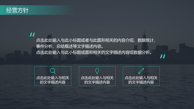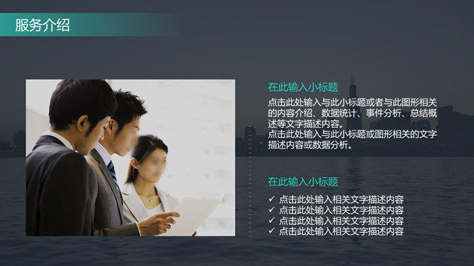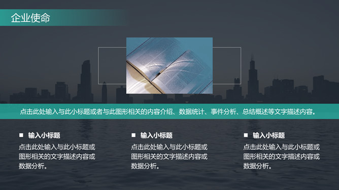 大气企业公司介绍简介PPT模板。一套公司企业介绍幻灯片模板,大气商务风,大图背景,有科技感,动态播放效果。