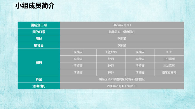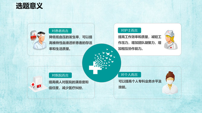 医院科室QCC品管圈PPT模板。一套医疗相关幻灯片模板,适合医院科室品管圈工作汇报,教育培训等用途。