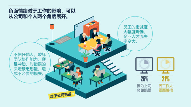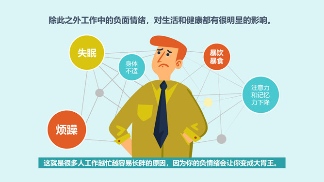 别让老板关心你的情绪PPT作品。工作中的负面情绪从何而来?首先我们要知道情绪是指伴随着认知和意识过程产生的对外界事物态度的体验。所以一旦工作过程带给我们压力,就会产生负面情绪。