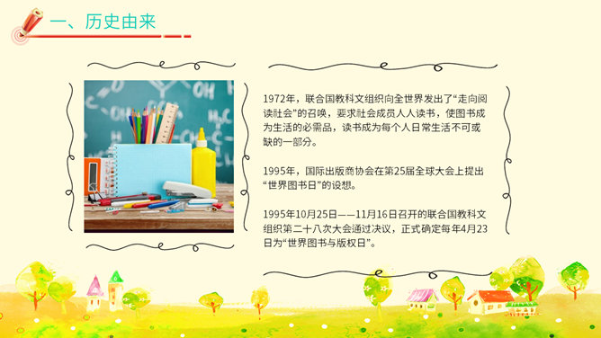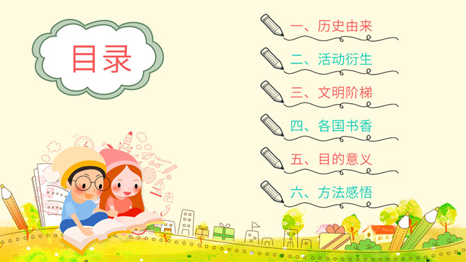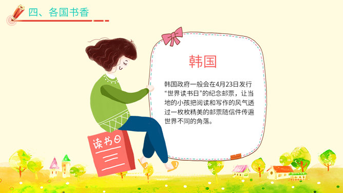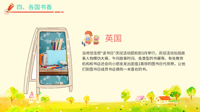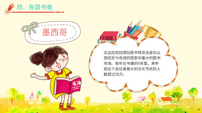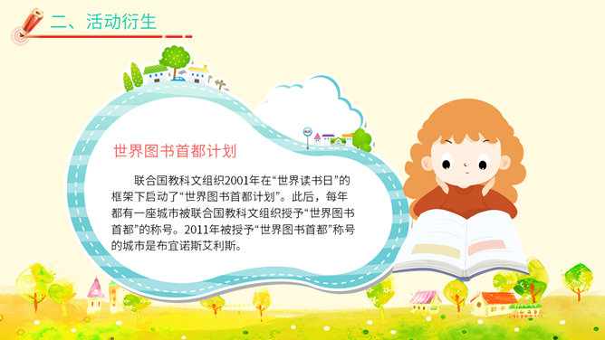 世界读书日读书分享会PPT模板。一套世界读书日主题幻灯片模板,可爱卡通设计风格,也适用小学读书分享。