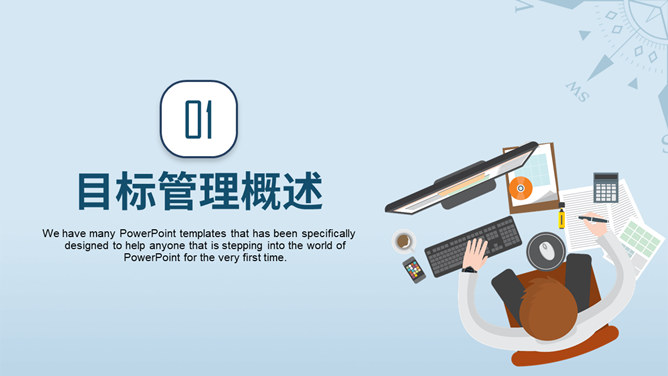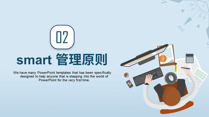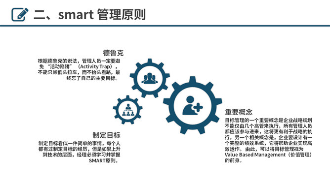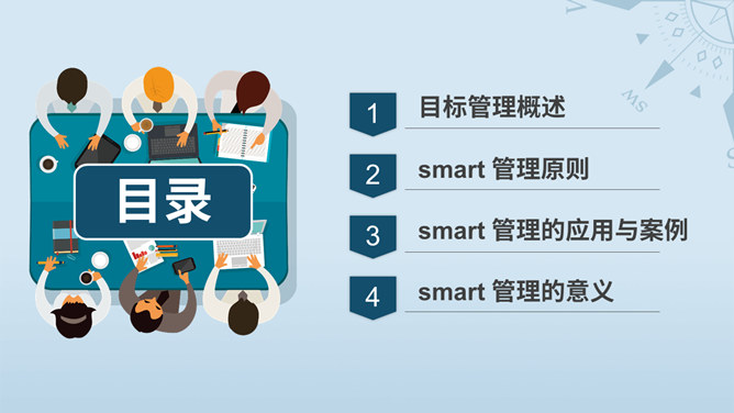 目标决定高度目标管理培训PPT模板。包括目标管理概述、smart管理原则、smart管理的应用与案例、smart 管理的意义几个部分。