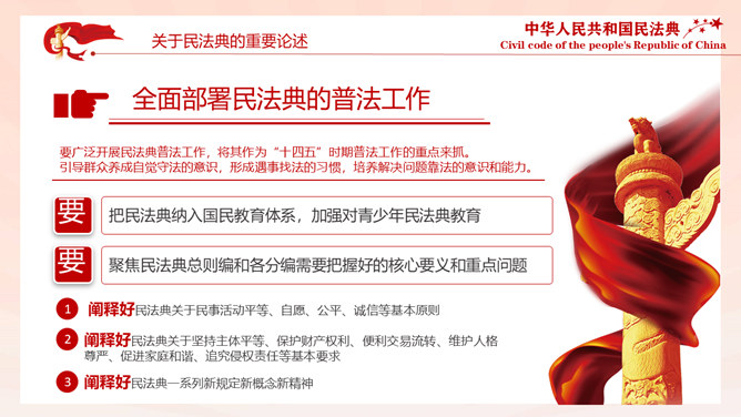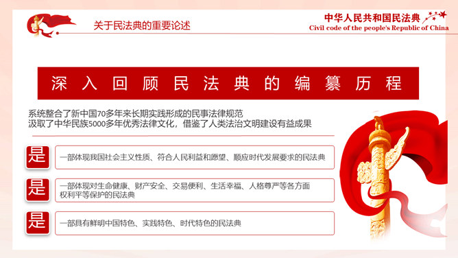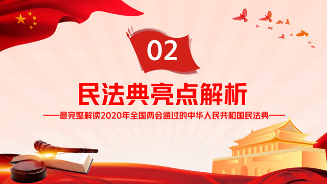 中国首部民法典解读PPT模板。一套解读民法典的幻灯片模板,共82页,非常详细实用并且设计精美。