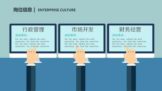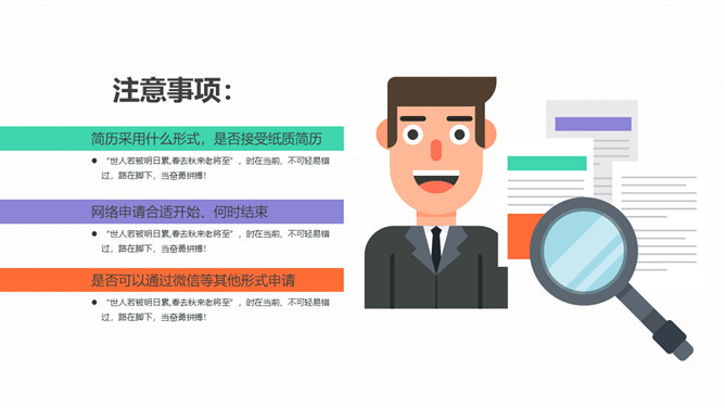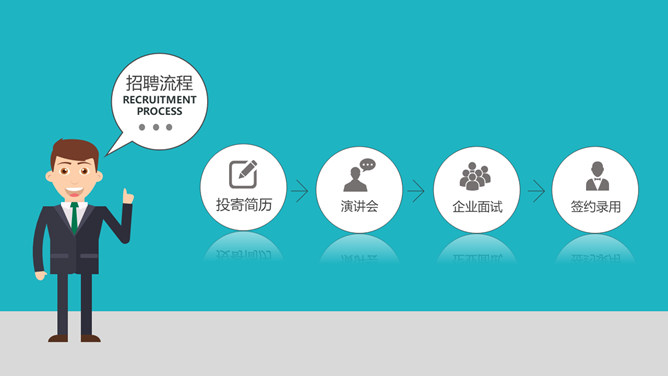 企事业单位校园招聘PPT模板。一套校园招聘幻灯片模板,扁平化设计风格,好看的动态播放效果。