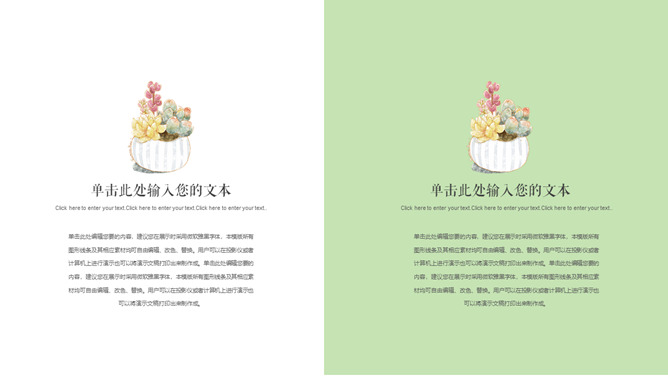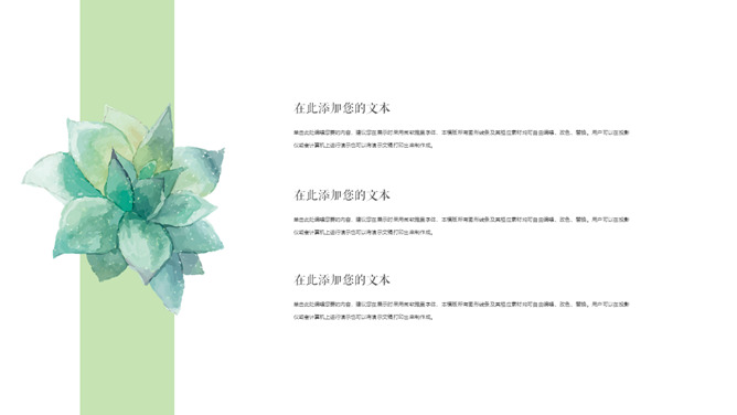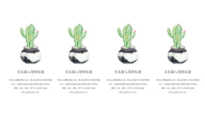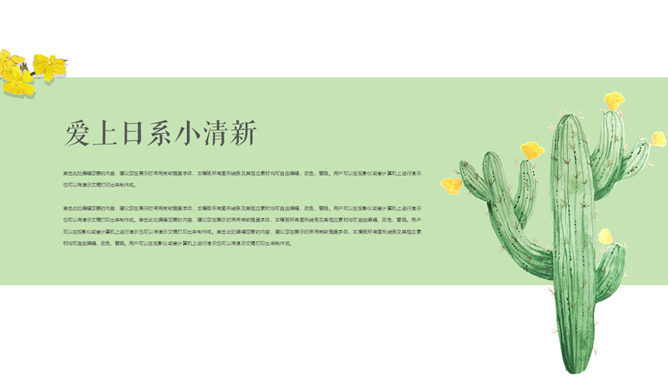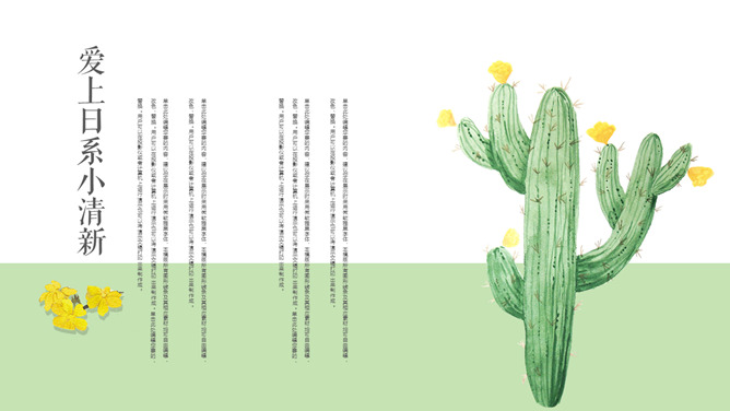 水彩仙人掌植物日系小清新PPT模板。一套淡雅小清新幻灯片模板,淡绿色主色调,水彩仙人掌元素,日系风格。