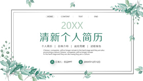 清新绿色叶子个人简历PPT模板
