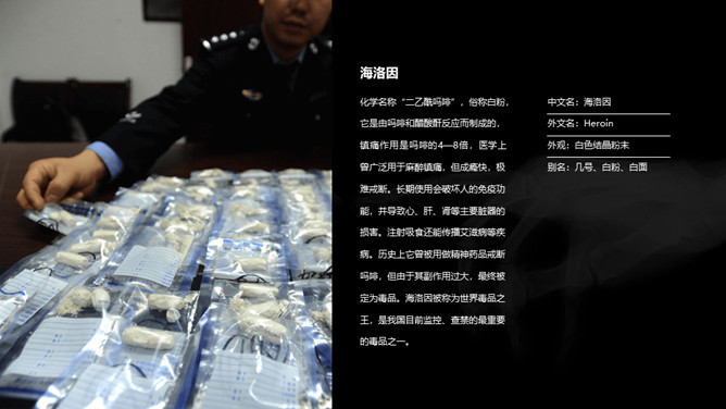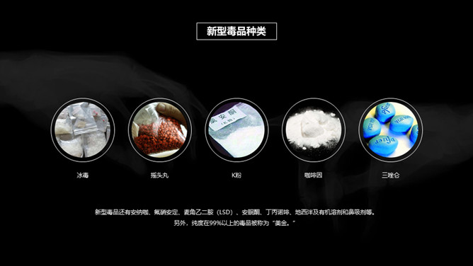 拒绝毒品禁毒教育课件PPT模板。包括什么是毒品、什么是吸毒、毒品的危害、如何防止吸毒几个部分。