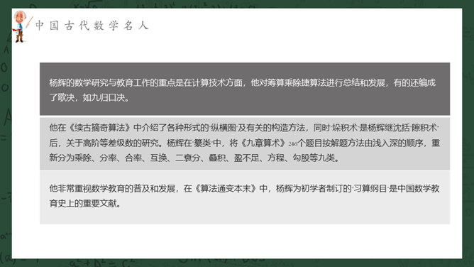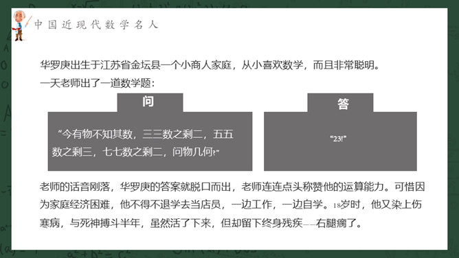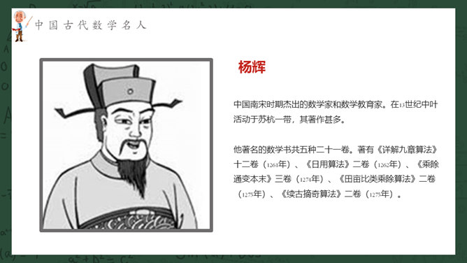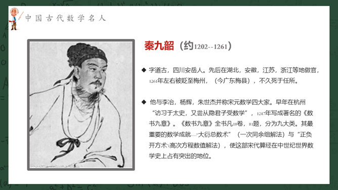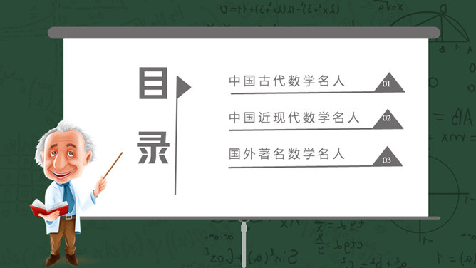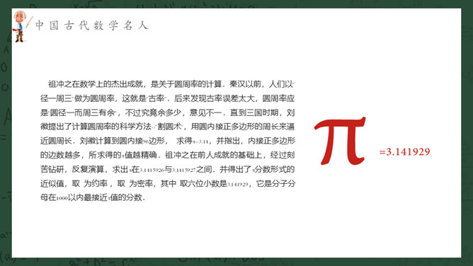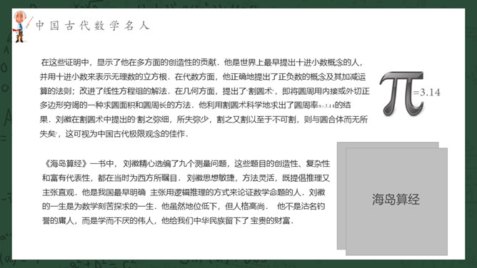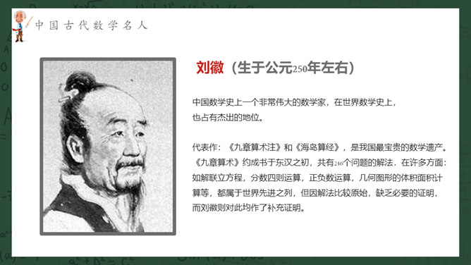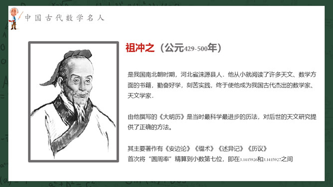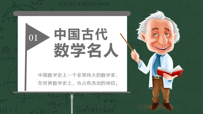 数学名人介绍PPT课件模板。介绍了中国古代数学名人、中国近现代数学名人、国外著名数学名人。