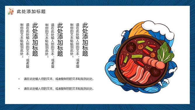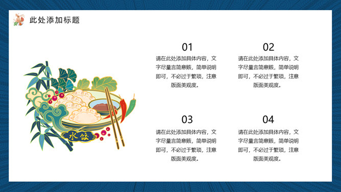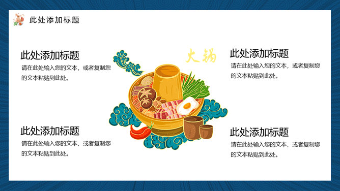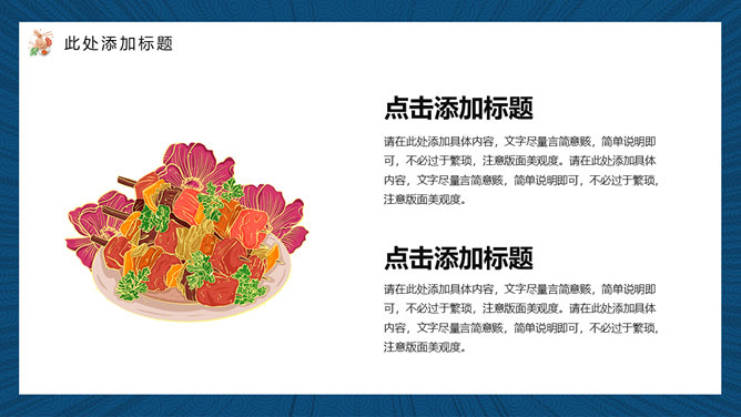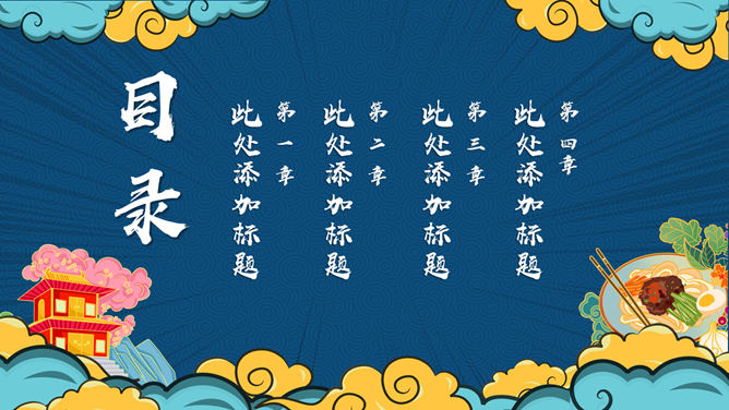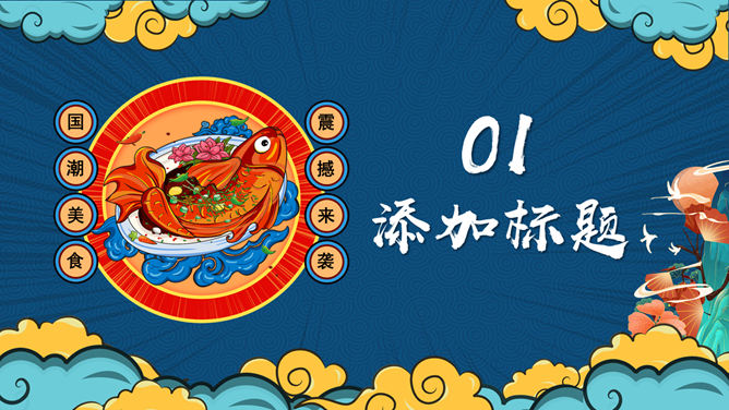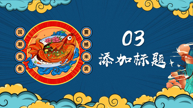 国潮风中华美食PPT模板。一套美食主题幻灯片模板,时尚国潮风格设计,适合介绍中国各地美食使用。