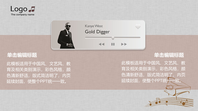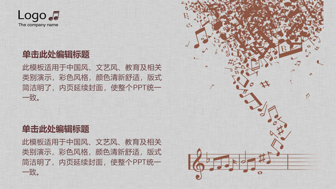 音乐音符乐理教学PPT模板。一套音乐主题幻灯片模板,音乐符号装饰,复古风格,适合音乐乐理教学使用。