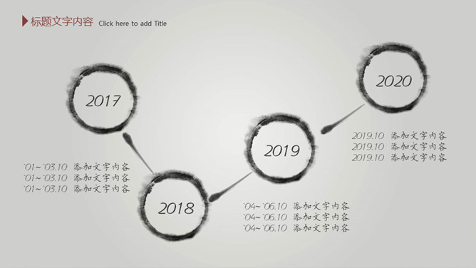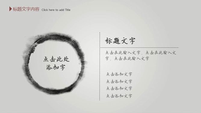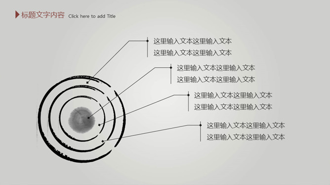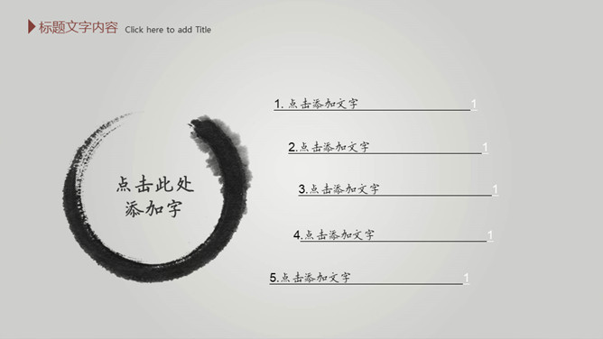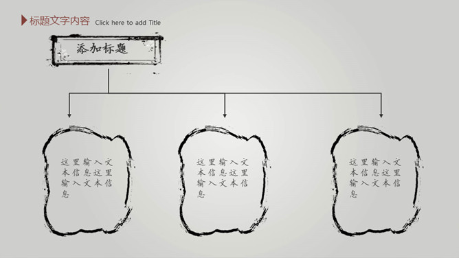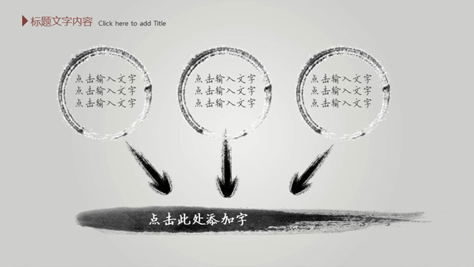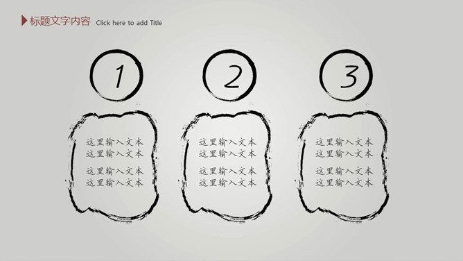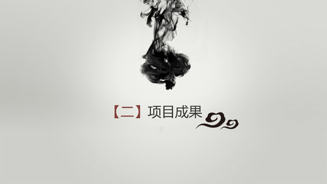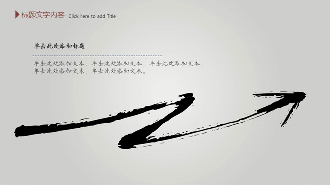 毛笔墨迹水墨中国风PPT模板。一套简约中国风幻灯片模板,渐变灰色背景,水墨效果封面,毛笔墨迹素材设计。